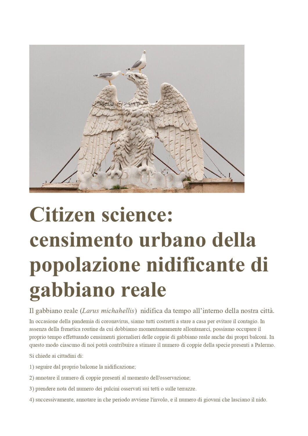 a seguito di una collaborazione tra Roberto Vento e la Stazione Ornitologica lanciamo un progetto ambizioso, ma facilmente realizzabile in questi tempi, in cui siamo abbastanza “casalinghi”: contare i gabbiani reali che nidificano nella città di Palermo.